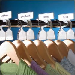 Sort, put away, and find clothes easily As seen in Better Homes & Gardens, Parents Magazine, and the Rachael Ray Show Organize your clothing like a pro! We have been using this product professionally for years in every closet we organize-- and we liked it so much we acquired it! Our clients love how this product helps them stay organized and gain full visibility to their wardrobes. We have improved the product by providing labels in both English and Spanish, and we have included our best tips and our handy closet maintenance calendar to show you how to keep your closet organized throughout the year. Each unit comes with 60 bilingual wardrobe labels and 12 dividers. Each plastic divider is 3.75"H, 3"W at the top, and 3.25"W at the bottom. The center hole is 1.5" in diameter and fits all standard closet rods. The distance from the top of the center hole to the top of the pieces is 1 inch.RelateItems